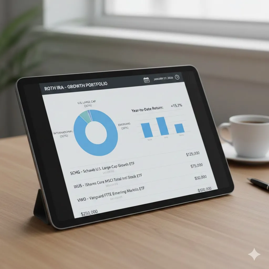 Inside, most investors choose broad index funds, diversified ETFs, and a small bond allocation depending on risk tolerance. Because Roth withdrawals are tax-free, many people place growth-focused assets here.
